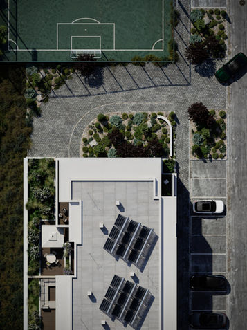 O principal destaque é atribuído à escolha dos materiais, designadamente, pela utilização de madeira no embasamento do edifício, que pretende conferir uma sensação acolhedora e apelar à coesão visual e identidade da urbanização onde se insere.